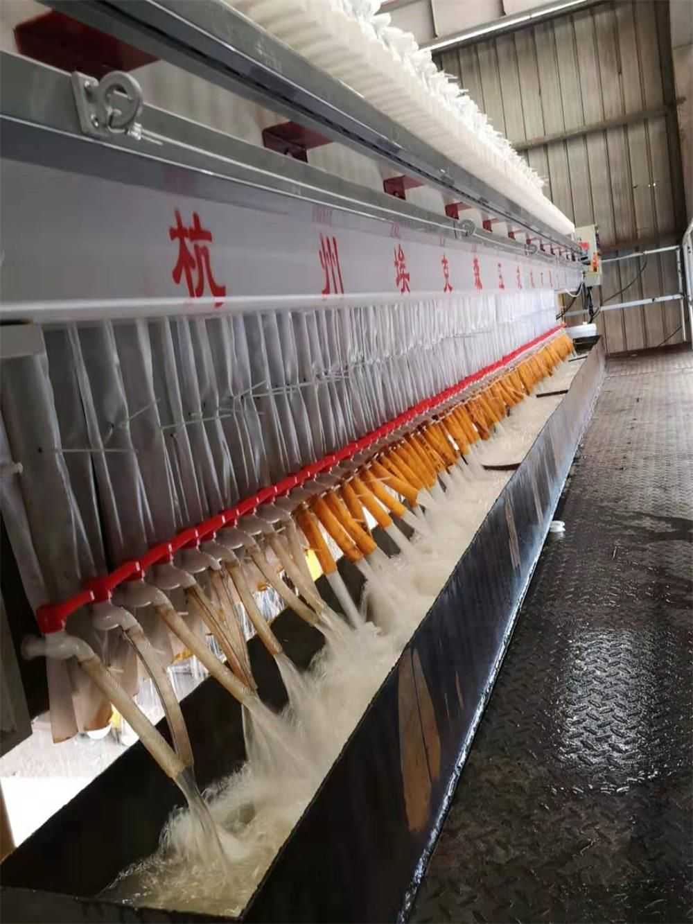 全自動廂式壓濾機與普通廂式壓濾機的不同之處在于多了自動拉板系統(tǒng),自動接液翻板,自動清洗濾布等系統(tǒng)。使設(shè)備操作更加智能化自動化。整機結(jié)構(gòu)設(shè)計科學(xué)合理,機械強度高、結(jié)構(gòu)穩(wěn)固、經(jīng)久耐用并且便于操作和維護。