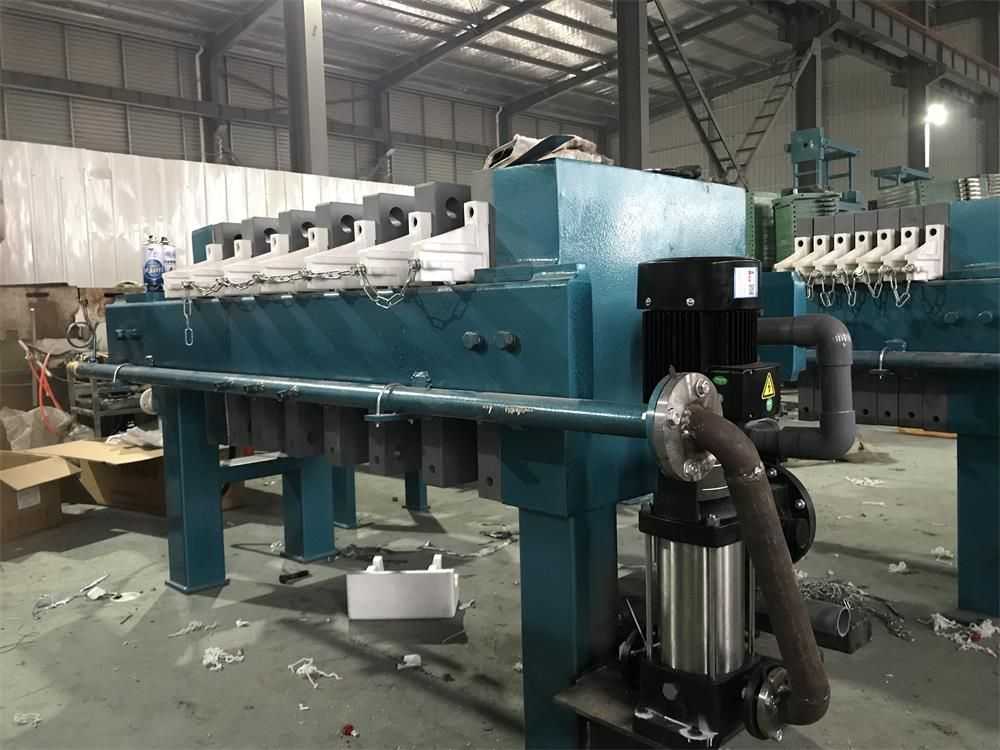 泵機一體式板框壓濾機,是進料泵和壓濾機直接管道連接好的便捷壓濾機。優(yōu)點是客戶安裝方便,節(jié)省現(xiàn)場空間,過濾速度快、泥餅含水率低。
